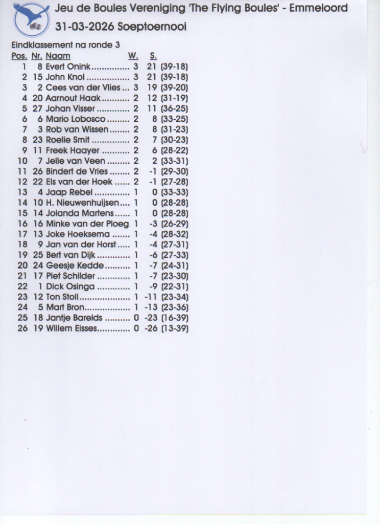 Na een heerlijke lunch – hiervoor onze dank aan de dames die dit hebben verzorgd – wordt het Soeptoernooi gehouden met 26 deelnemers.